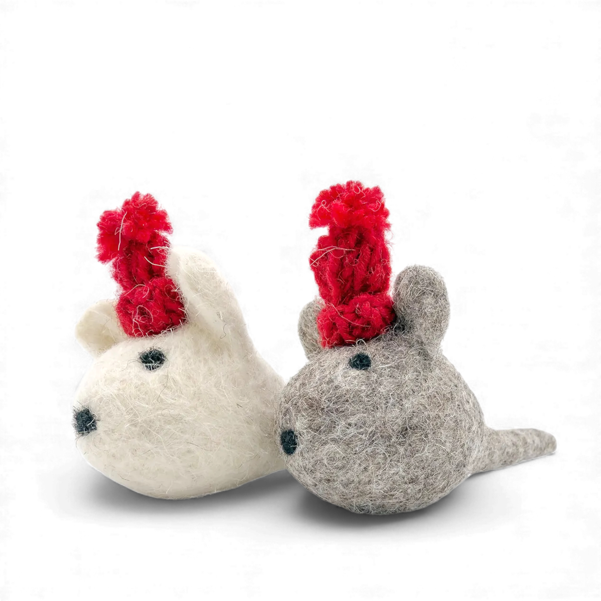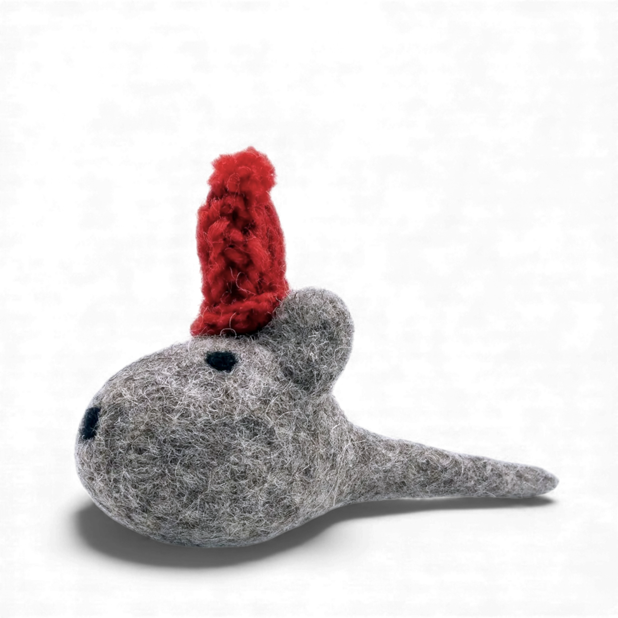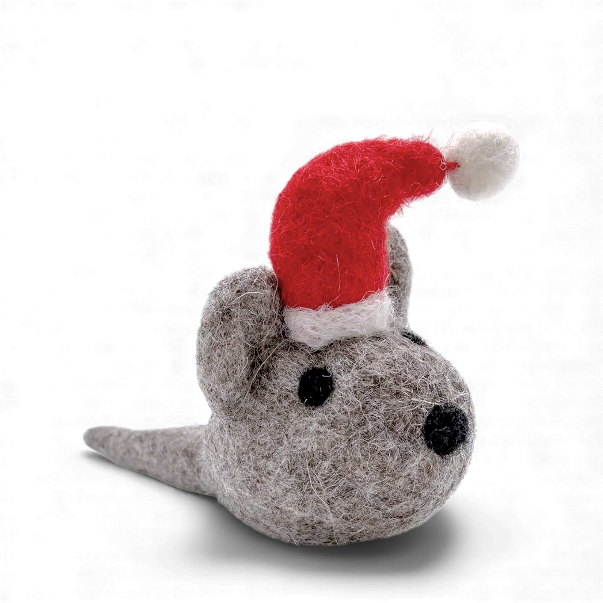 A festive wool mouse that keeps the holiday spirit high and the household quiet, even during late-night zoomies.